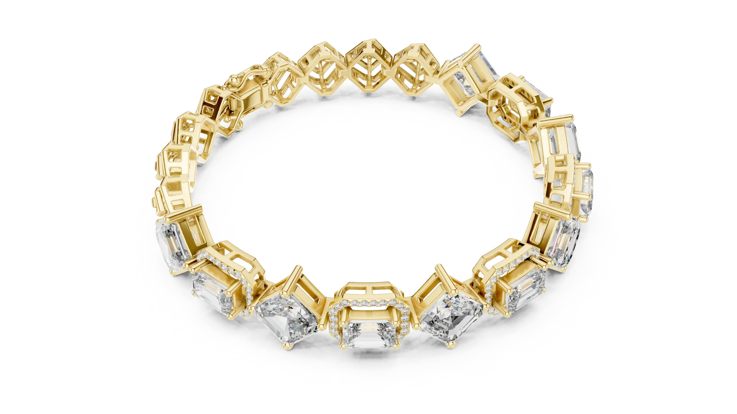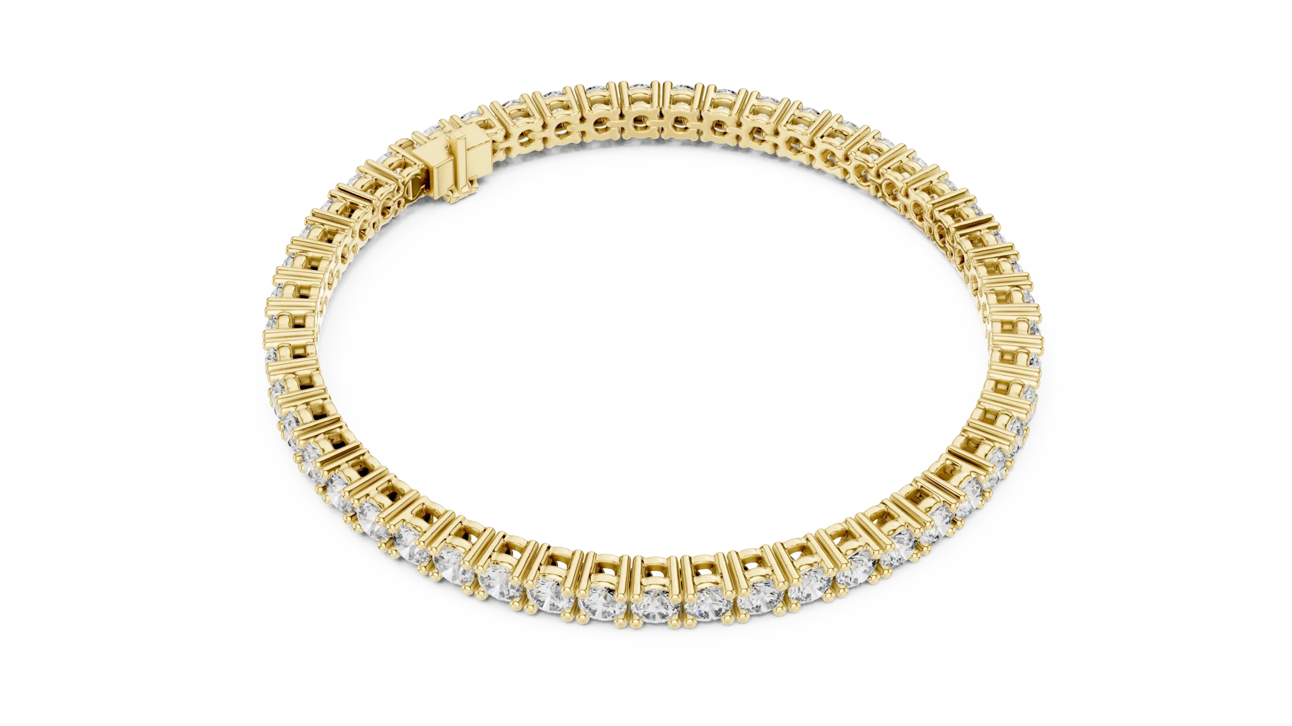 A refined single-row inline tennis bracelet — one continuous line of brilliant diamonds in the most wearable setting ever designed.
